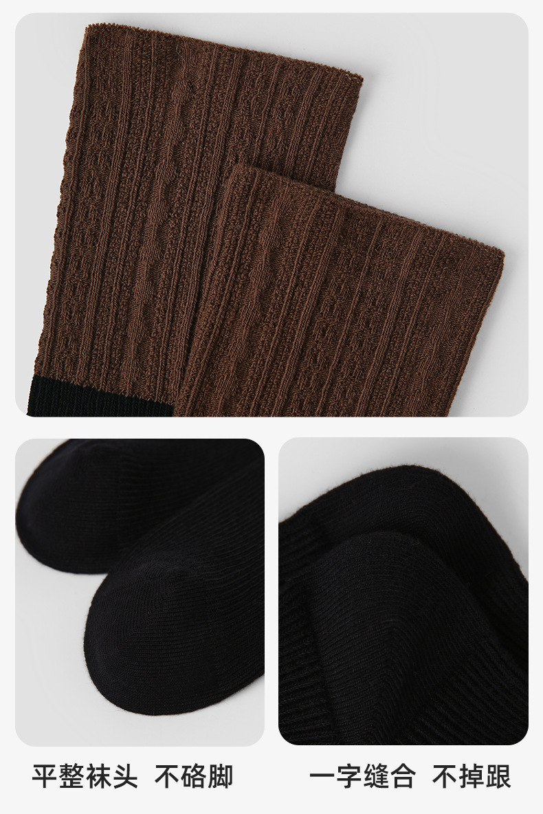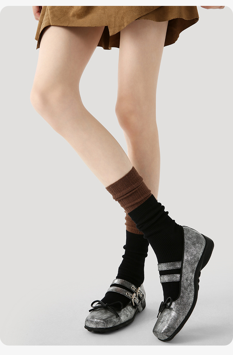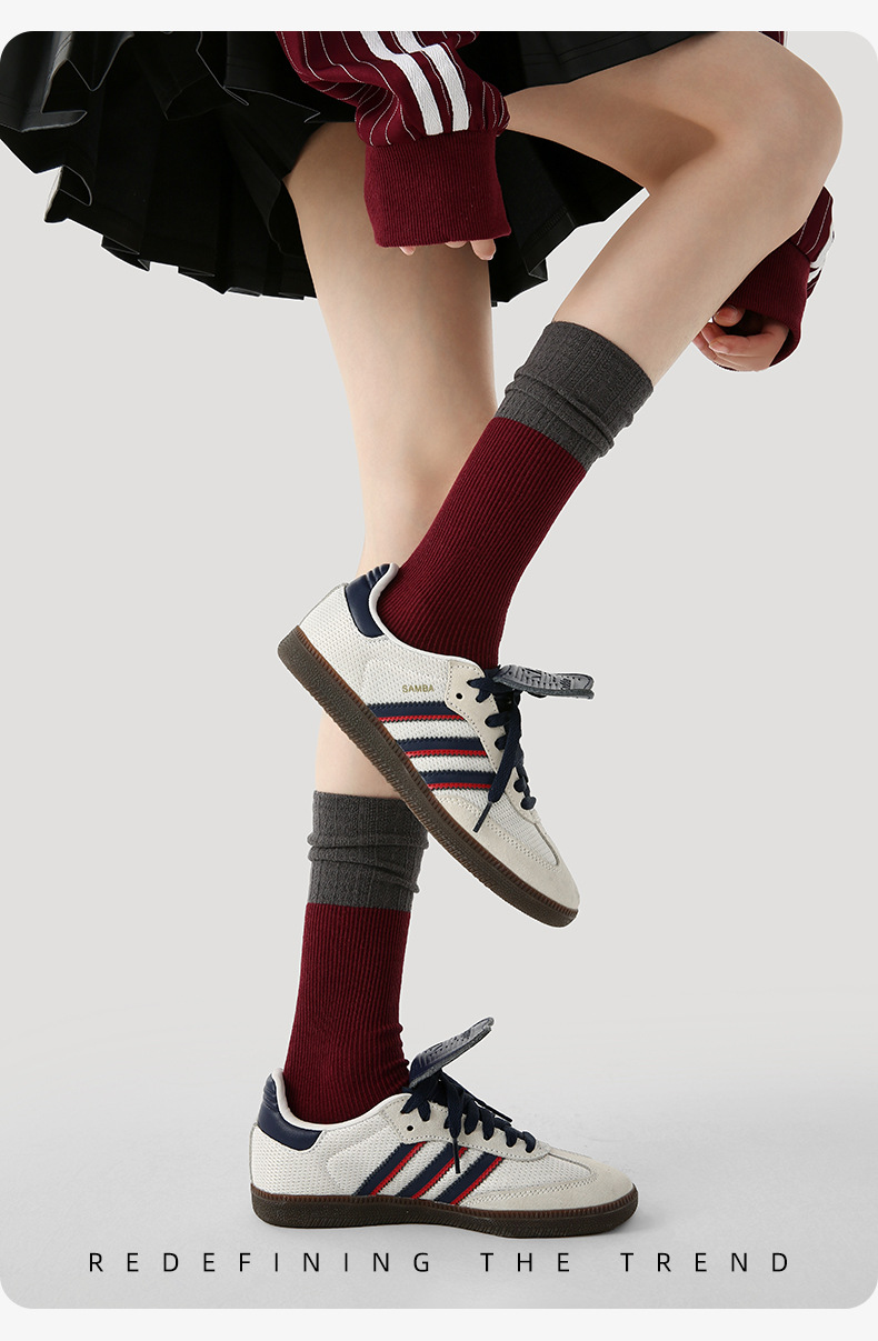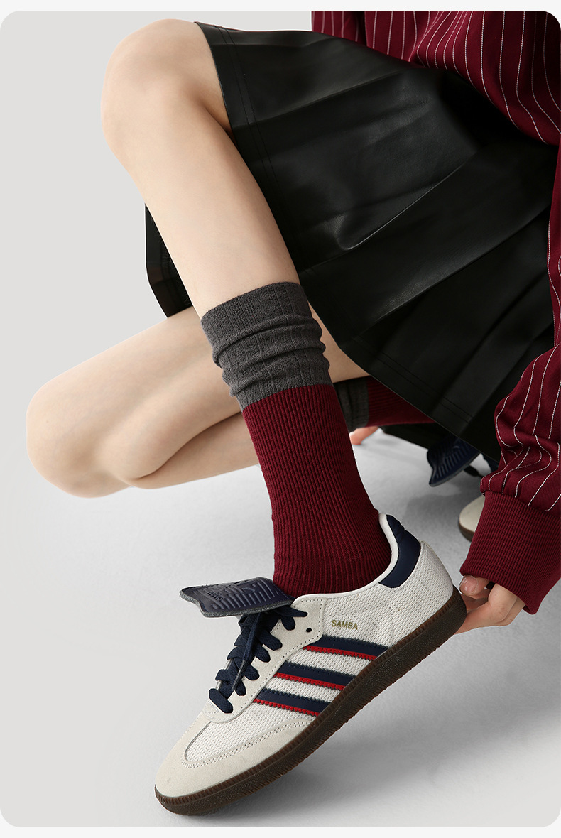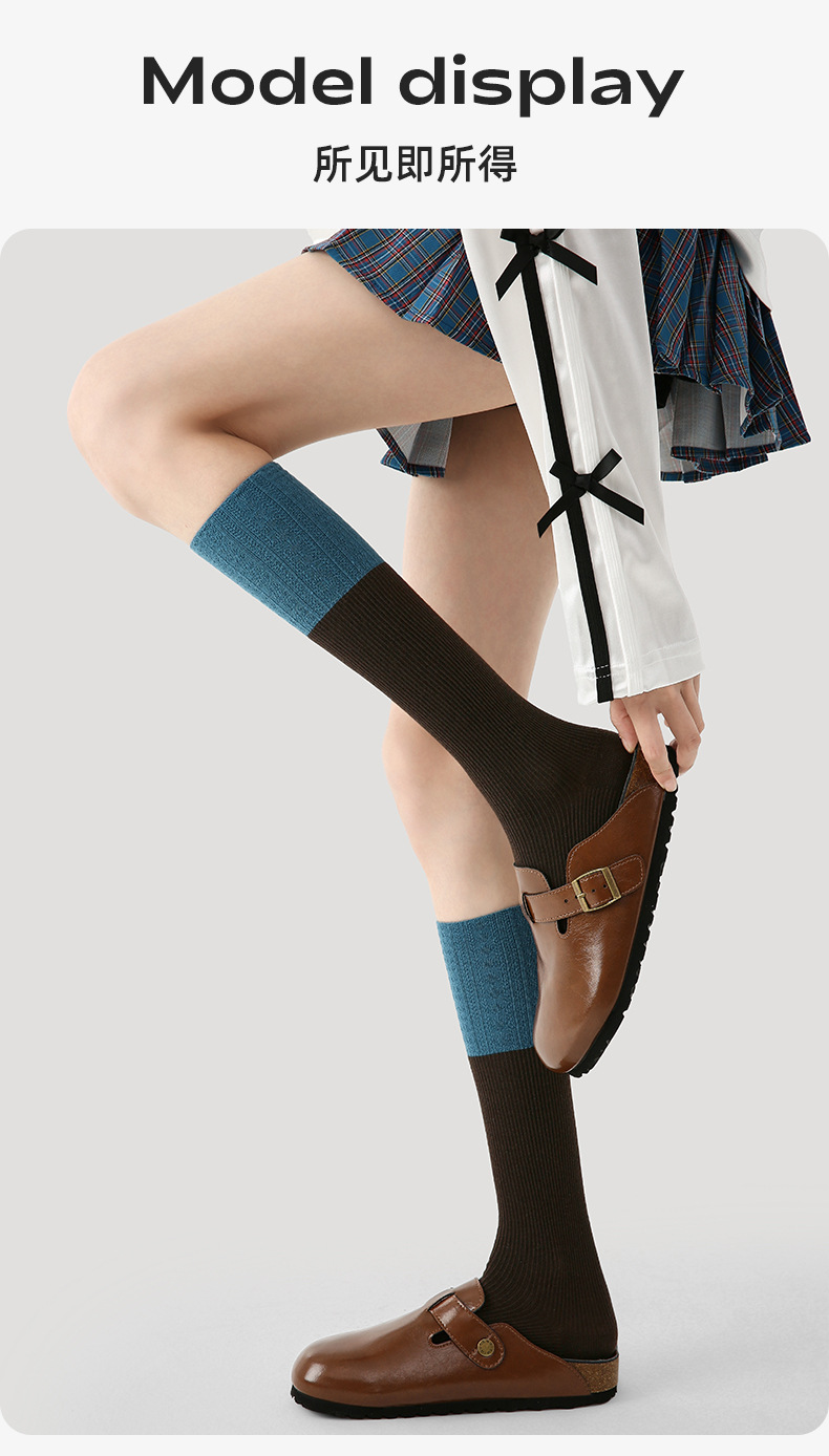 原创女袜秋冬中筒袜无骨堆堆袜拼色细纹简约ins袜子女